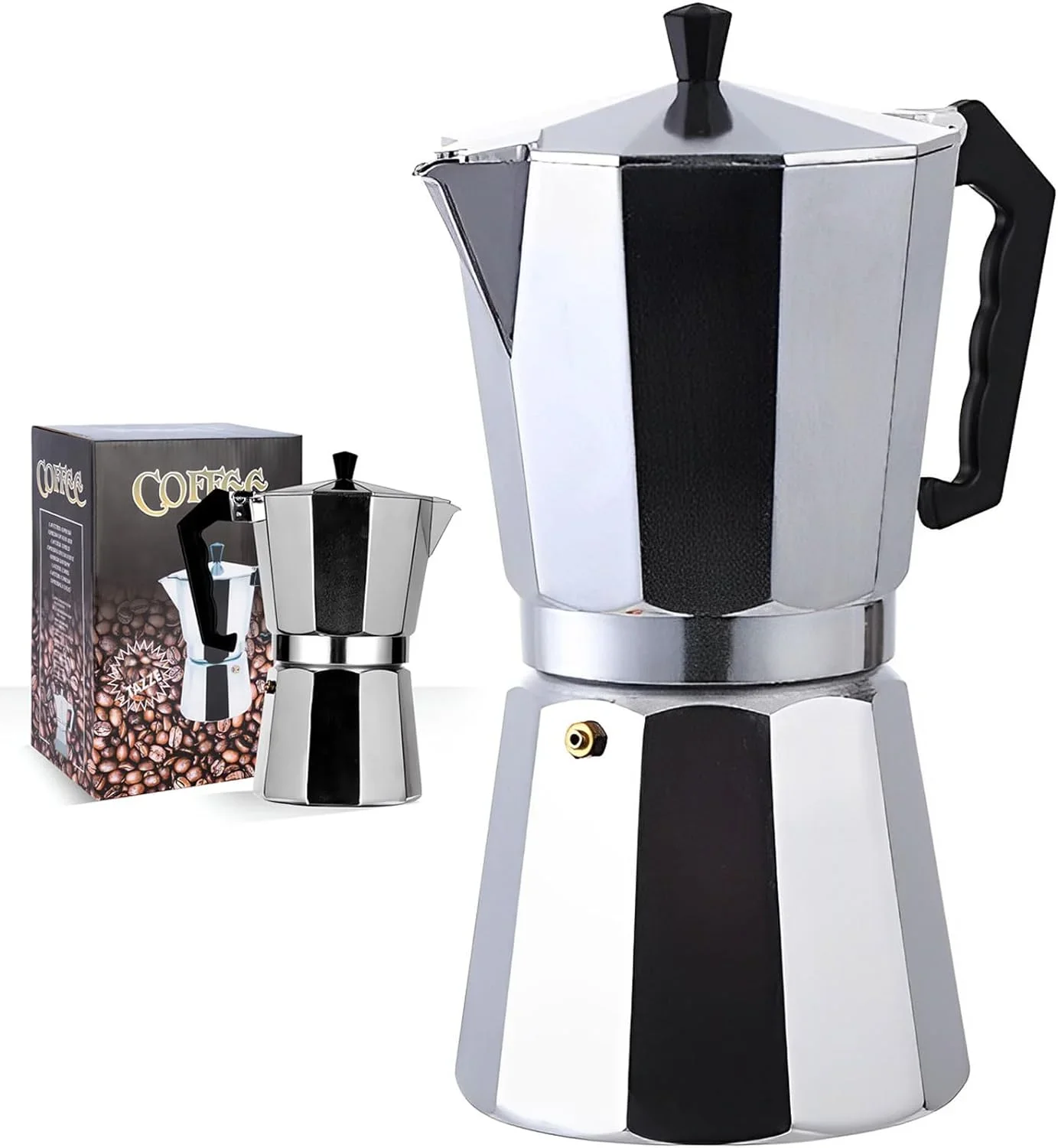 - Forma: Diseño octogonal, que es una apariencia clásica para las cafeteras Moka, ofreciendo un buen agarre y calentamiento uniforme.